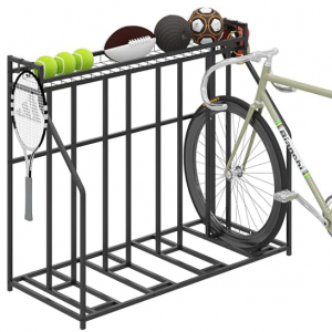 Stand Bike Racks for Garage, 4 Bike Stand Rack with Storage Basket, Metal Floor Bike Parking, Garage Organizer Suitable for Mountain, Hybrid, Adult and Kids Bikes