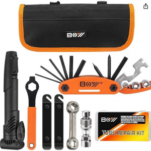 Bicycle Repair Bag With Tire Pump, Portable Tool Kit for Camping Travel – Bike Glueless Patches, Maintenance Essentials All in One Safety Kit
