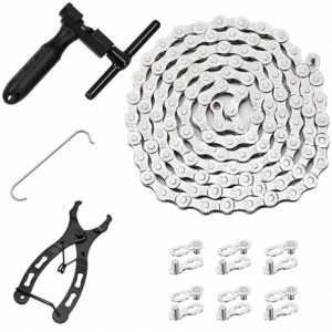 Bike Chain Tool Kit with 6/7/8 Speed Chain, Bike Chain Breaker with Hook, Link Plier and 6 Pairs Bicycle Buckle for Road Mountain Racing Cycling