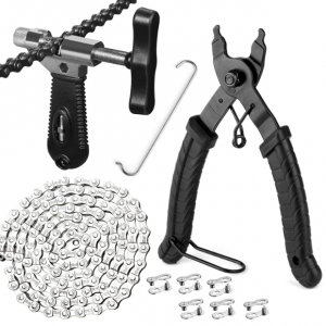 Bike Chain Kit, 6/7/8 Speed Multi-Function Bike Mechanic Repair Kit, Chain Breaker and Bike Link Plier with Hook and 6 Pairs Bicycle Buckle, Reusable